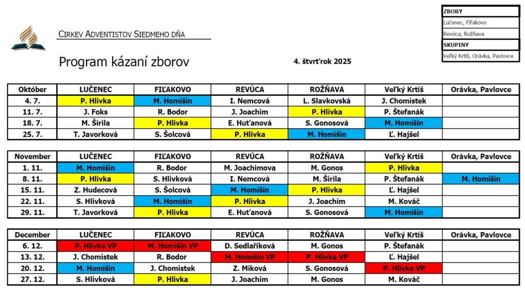 Program pobožností 4. štvrťrok 2025